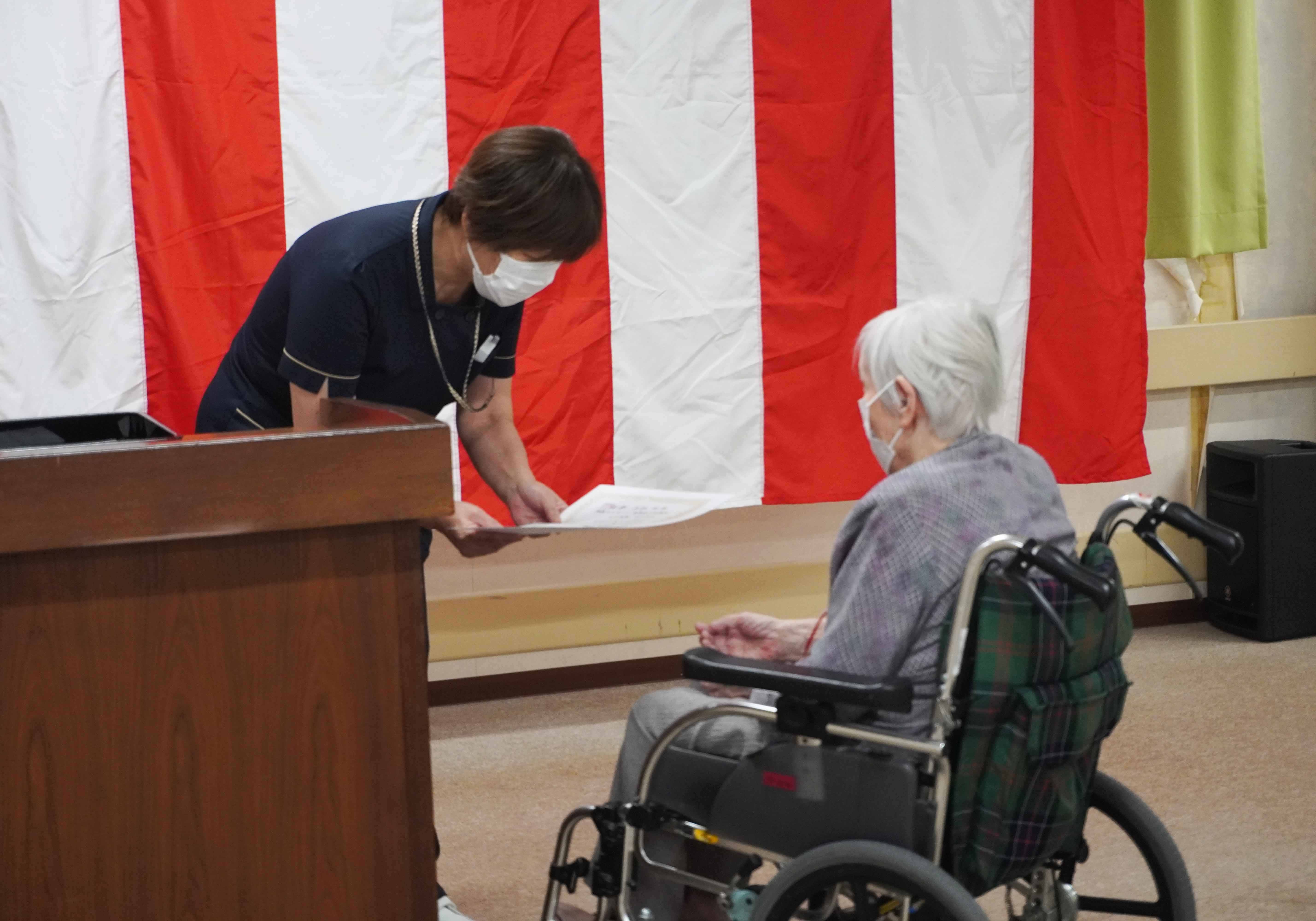 看護部長より表彰状をお渡ししました当院に入院・入所されている皆様のご長寿を祝い、敬老祝賀会を開催しました。