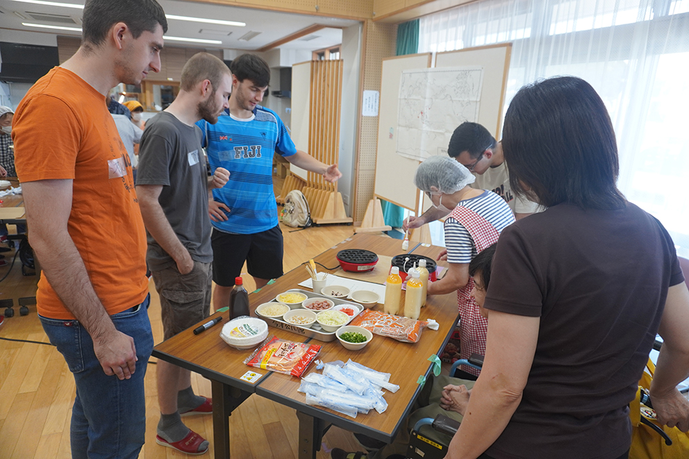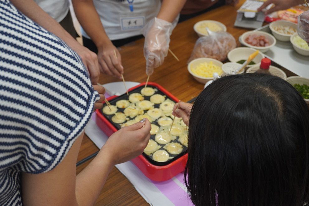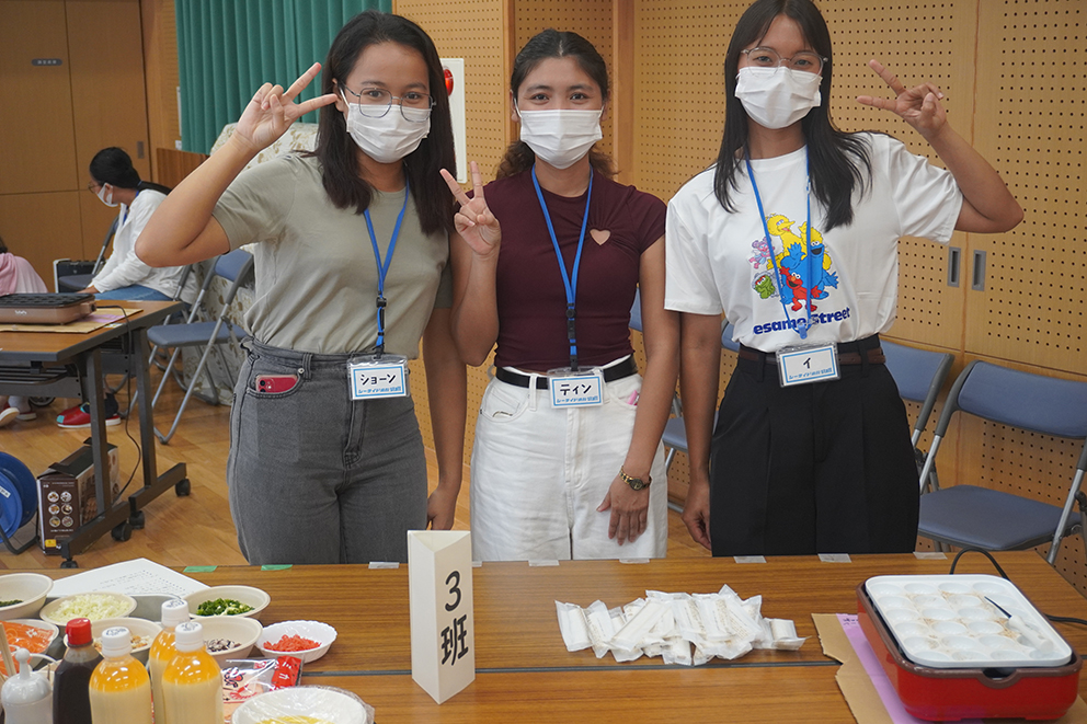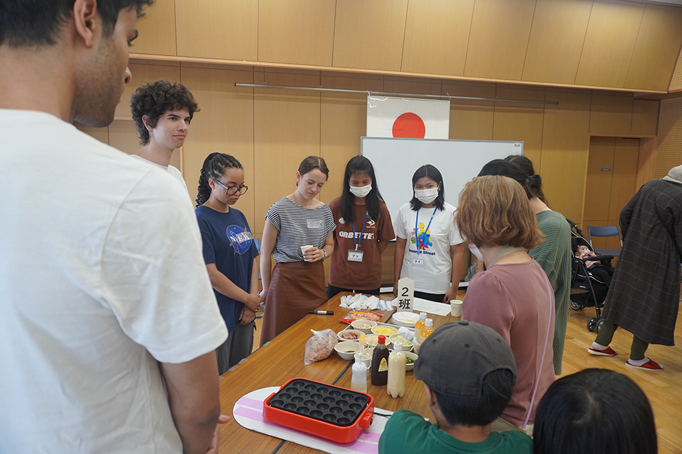 今回参加した3期生の多くは、たこ焼きを作るのも食べるのも初めて。班ごとにボランティア団体『なぎさ』のメンバーが一人ずつ付き、作り方を教えてもらいながら、実際にたこ焼き作りを体験しました。回数を重ねるごとに皆さん腕を上げていき、食べることよりも作ることに夢中になっている留学生の姿も見られました。