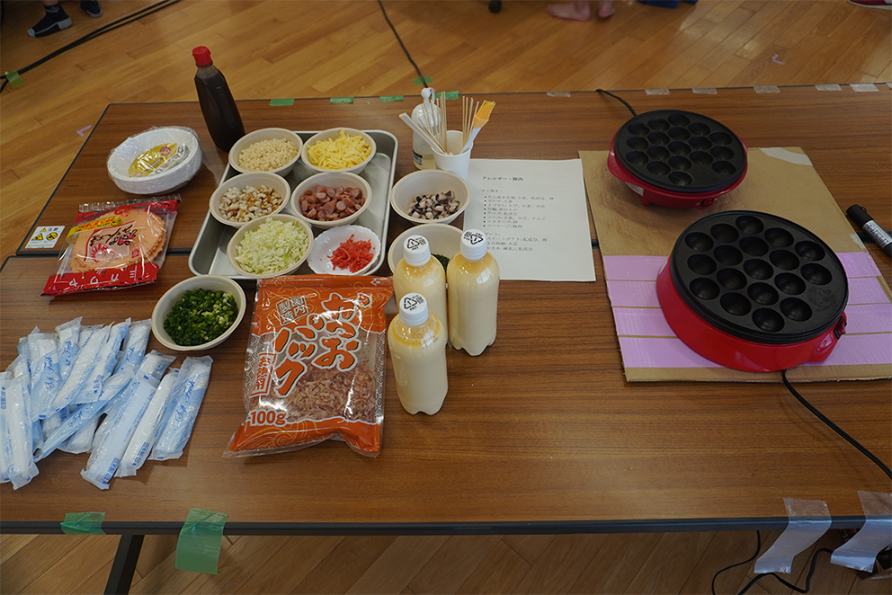 ボランティア団体『なぎさ』さん達からたこ焼きの作り方を教えて貰います