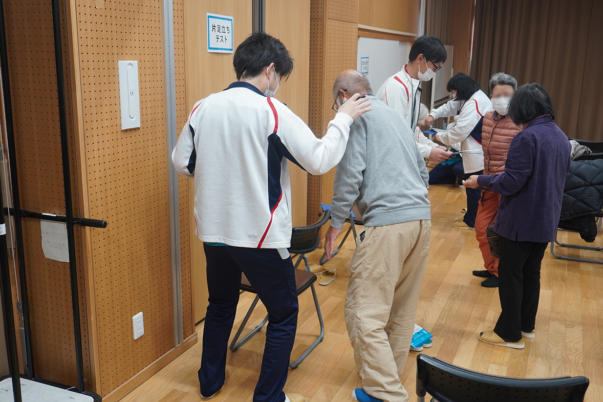 当日は45人の方にご参加いただき、講座の前には骨密度測定・血圧測定・握力測定・5回立ち上がりテスト・片足立ちテストを実施しご自身の健康状態を確認して頂きました。