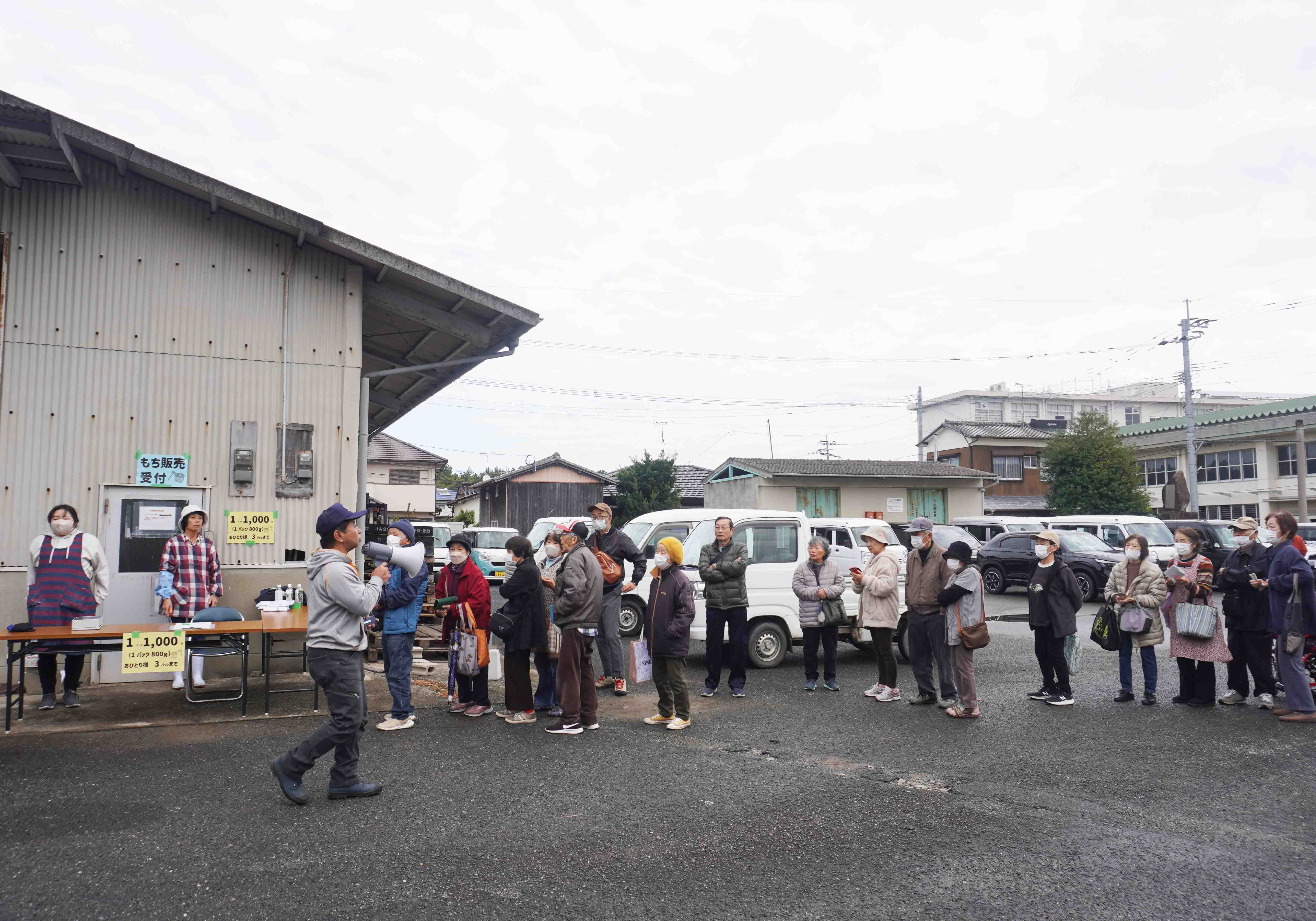 お餅の販売にあたっては、10時から整理券の配布が予定されていましたが、開始10分前にはすでに行列ができるほどの人気ぶり!