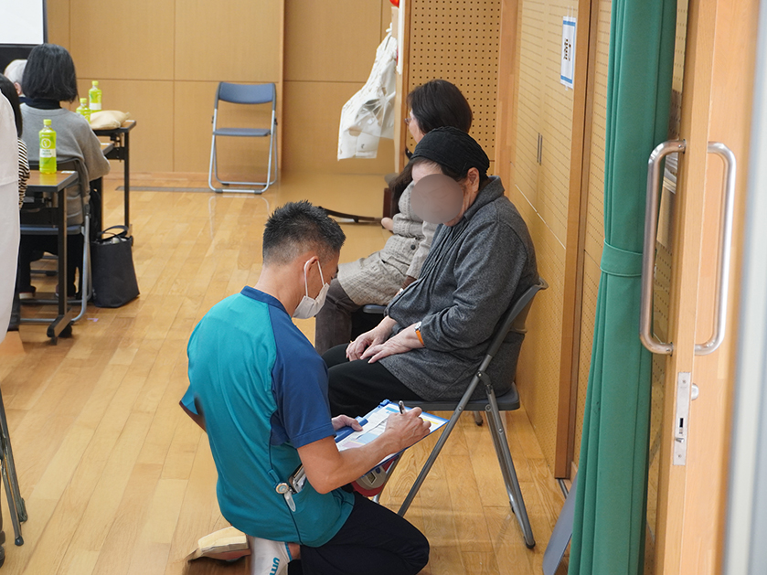 講座の前には、血圧・骨密度・握力の測定や、希望者への「もの忘れ相談」などを実施し、ご自身の健康状態を確認していただきました。