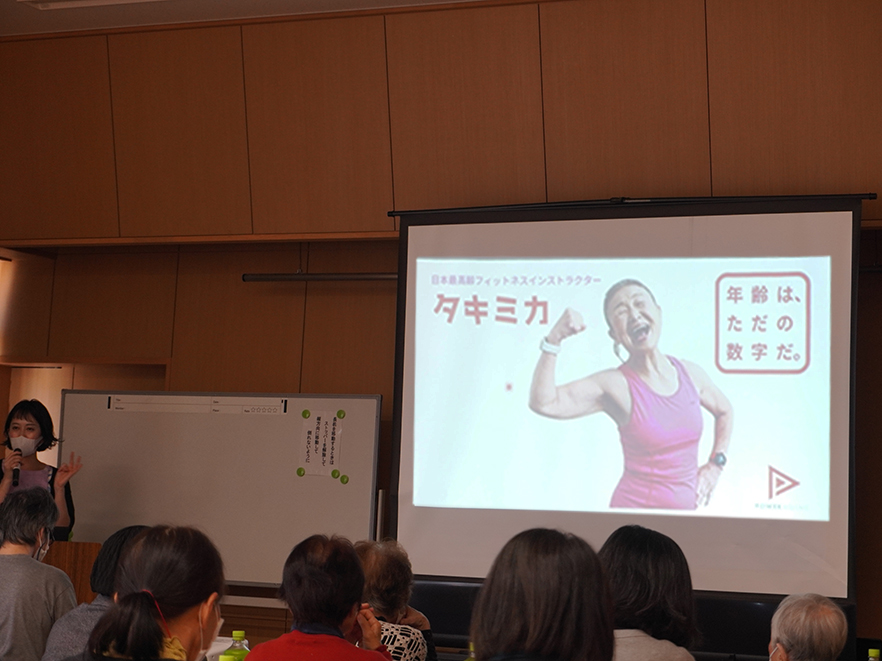講話では、「少しぽっちゃりした体型の方が長生きしやすい傾向がある」「体重は健康のバロメーター」「主食・主菜・副菜をそろえ、特にたんぱく質を意識して摂ることが大切です」など、日常生活に役立つ具体的なポイントを紹介しました。