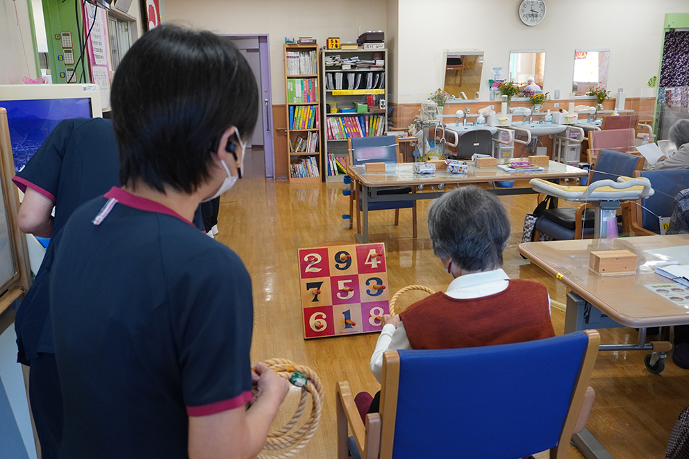 今回は『わなげ』と『風船当て(お化けをやっつけろ)ゲーム』を行いました。「わなげ」と「風船当てゲーム」は、楽しみながら自然に体を動かすことができ、腕を動かしたり姿勢を保ったりすることで、『上肢の運動』、『体幹の安定性』、『バランス能力』 が無理なく刺激され、日常生活に必要な基本的な動作のトレーニングにつながります。