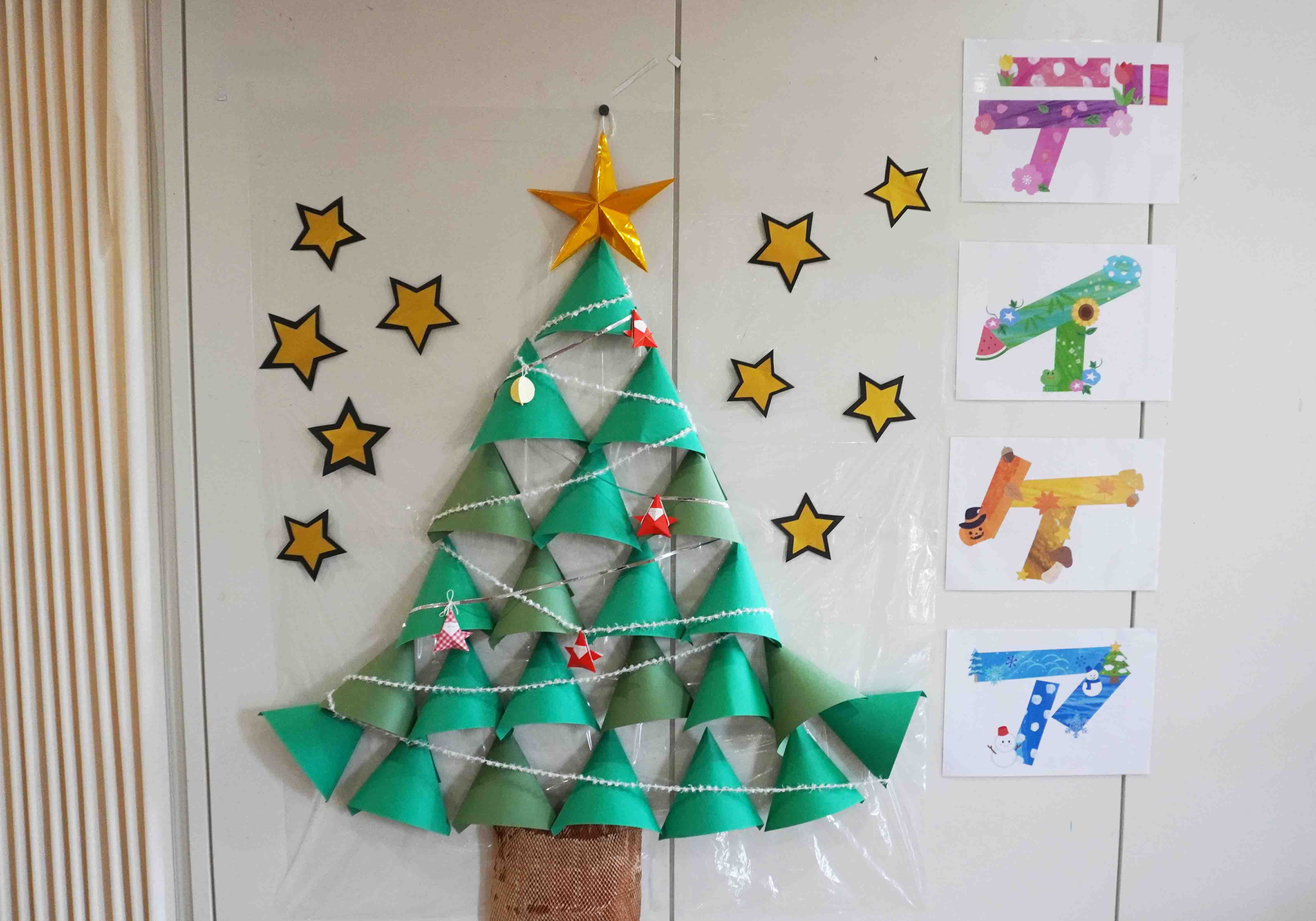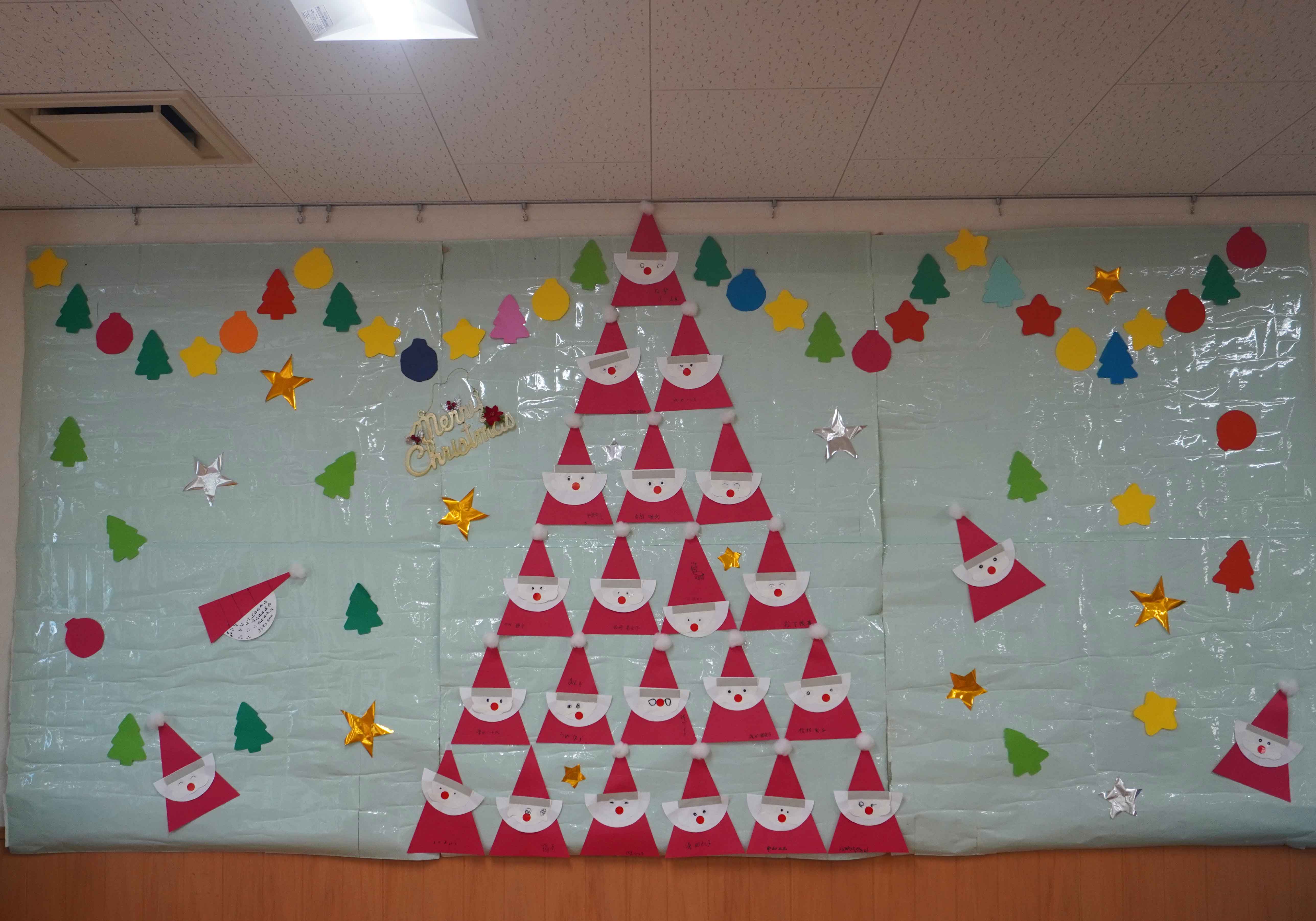 デイケアの手作りツリー☆リハビリ室にはサンタツリー!