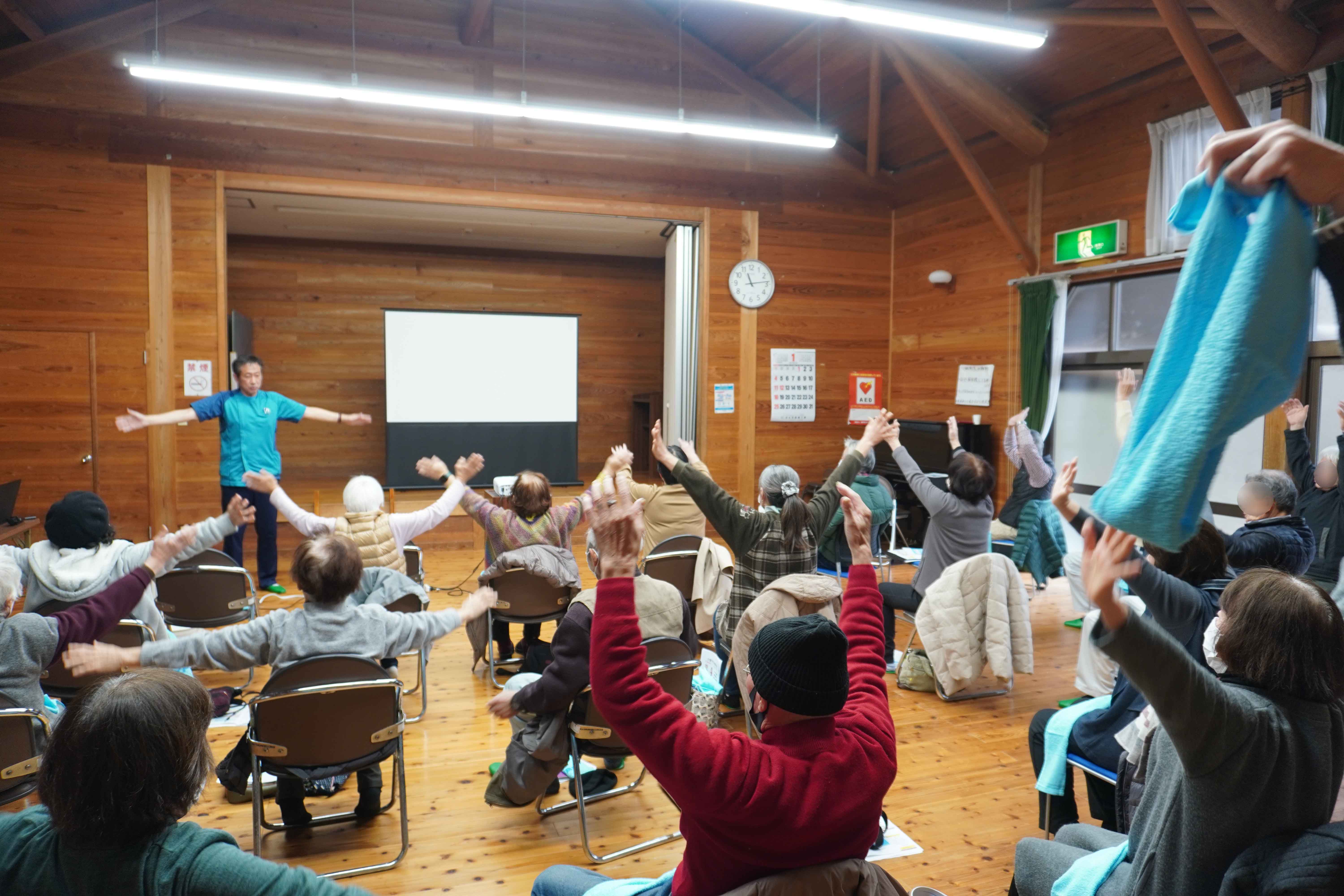 最後にはお家でも実際に習慣として取り組める運動や体操(タオル使った体操・スクワットなど)を体験していただきました。