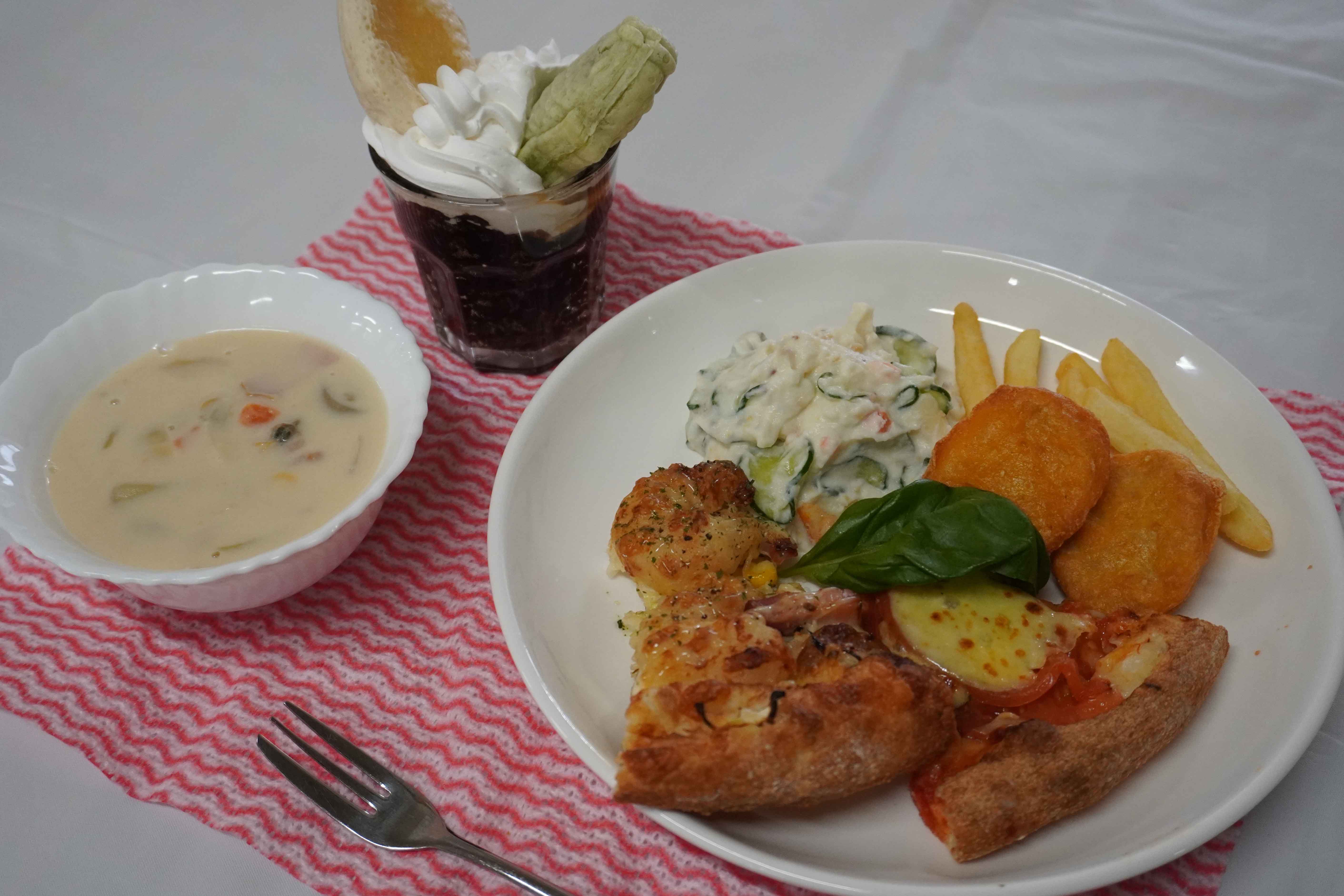 〇サイドメニューはポテト・ナゲット、ポテトサラダにクラムチャウダー