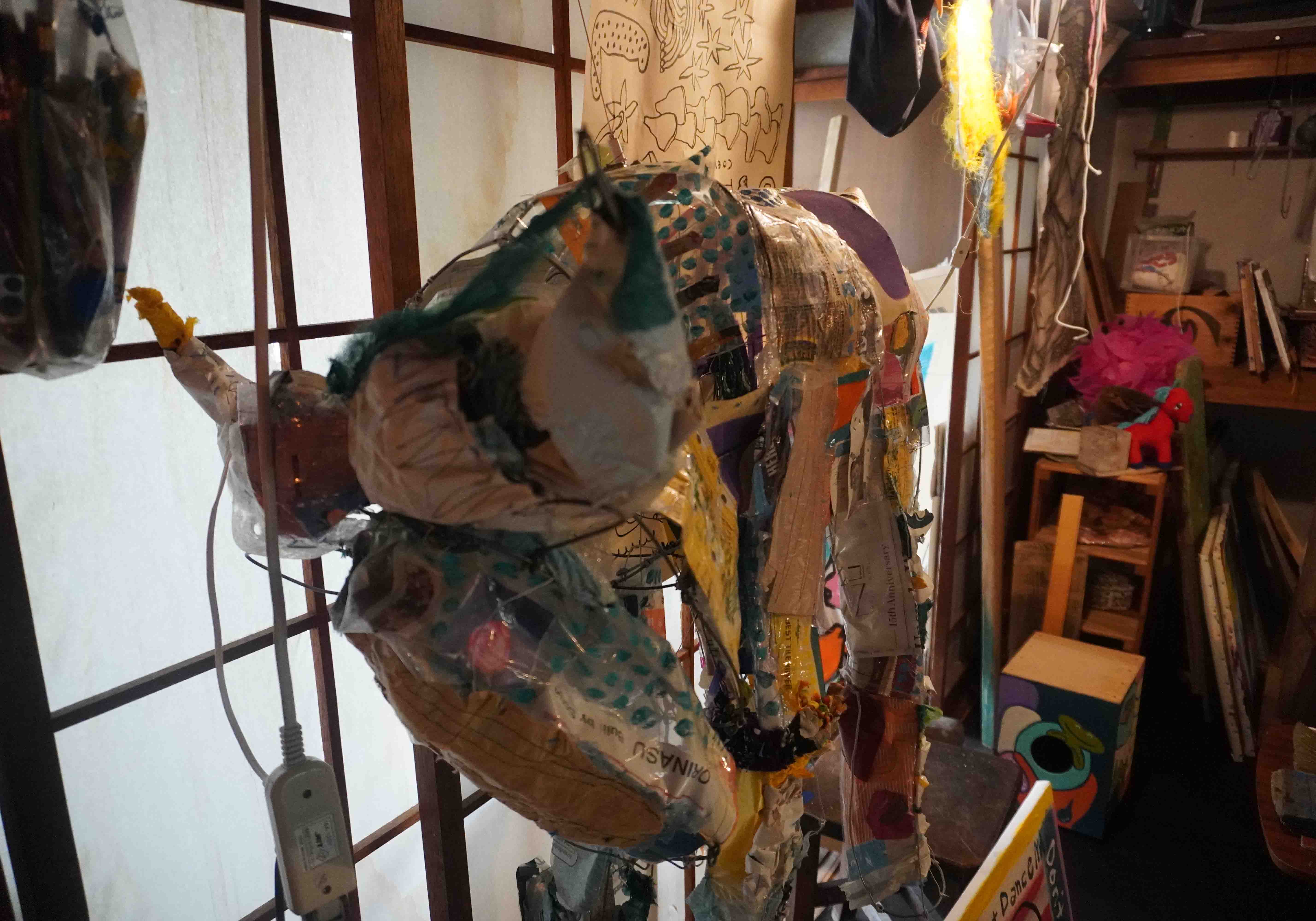 このオブジェも、海に流れ着いた発泡スチロールから生み出された作品のひとつです